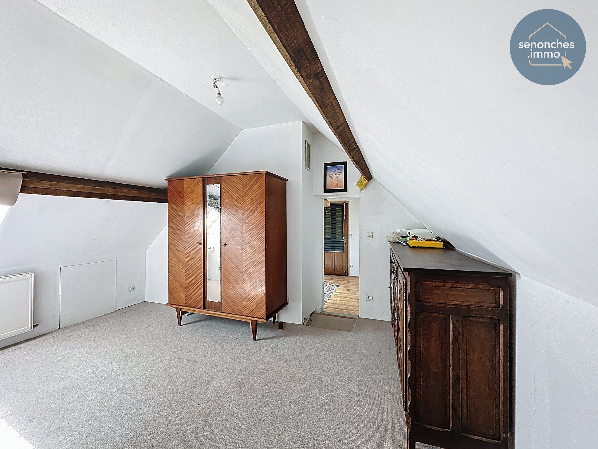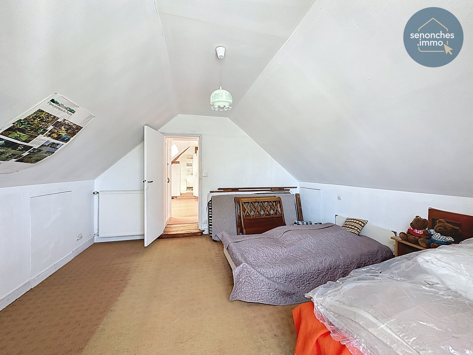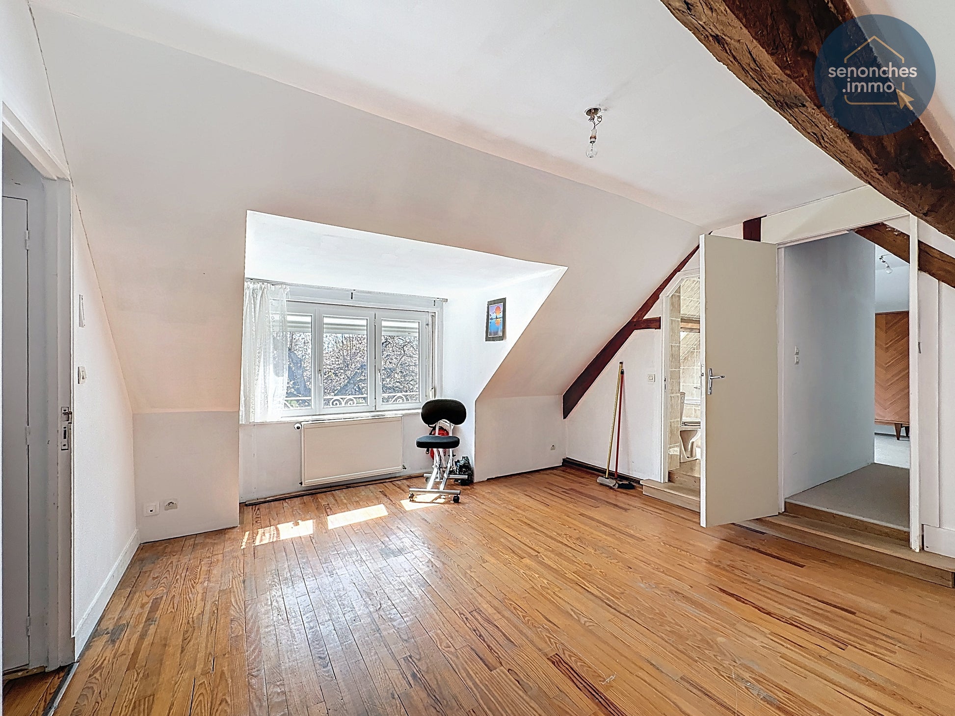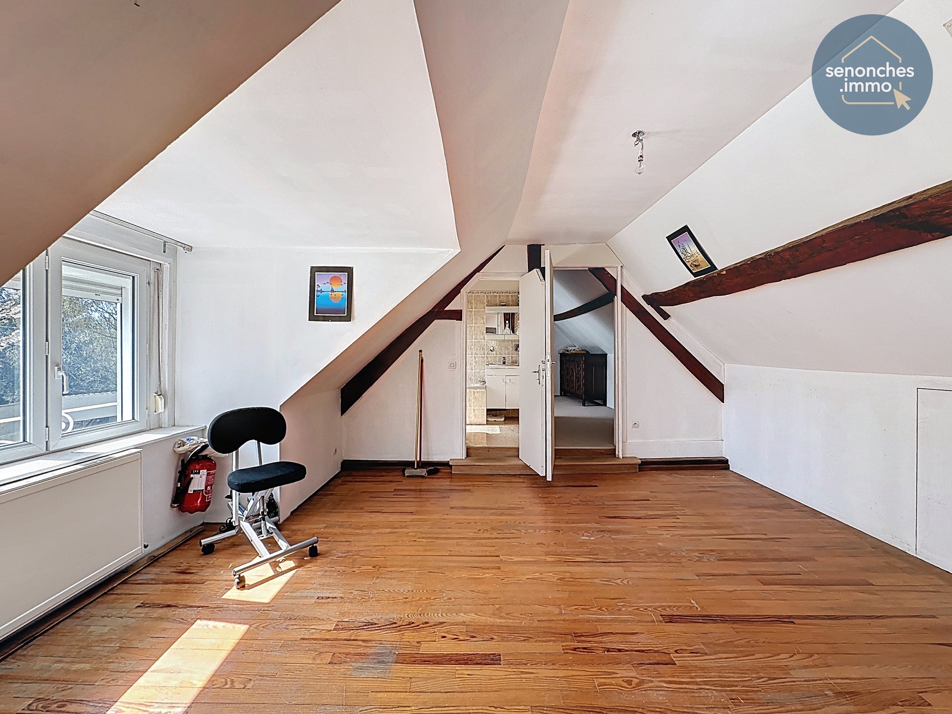 À l’étage, un grand palier de 18,45 m² ouvre des perspectives intéressantes pour aménager un bureau, une bibliothèque ou un espace de jeux selon les besoins. Trois chambres spacieuses complètent ce niveau, avec des surfaces de 16,72 m², 15,21 m² et 17,05 m², offrant des volumes particulièrement appréciables pour une maison de cette époque.